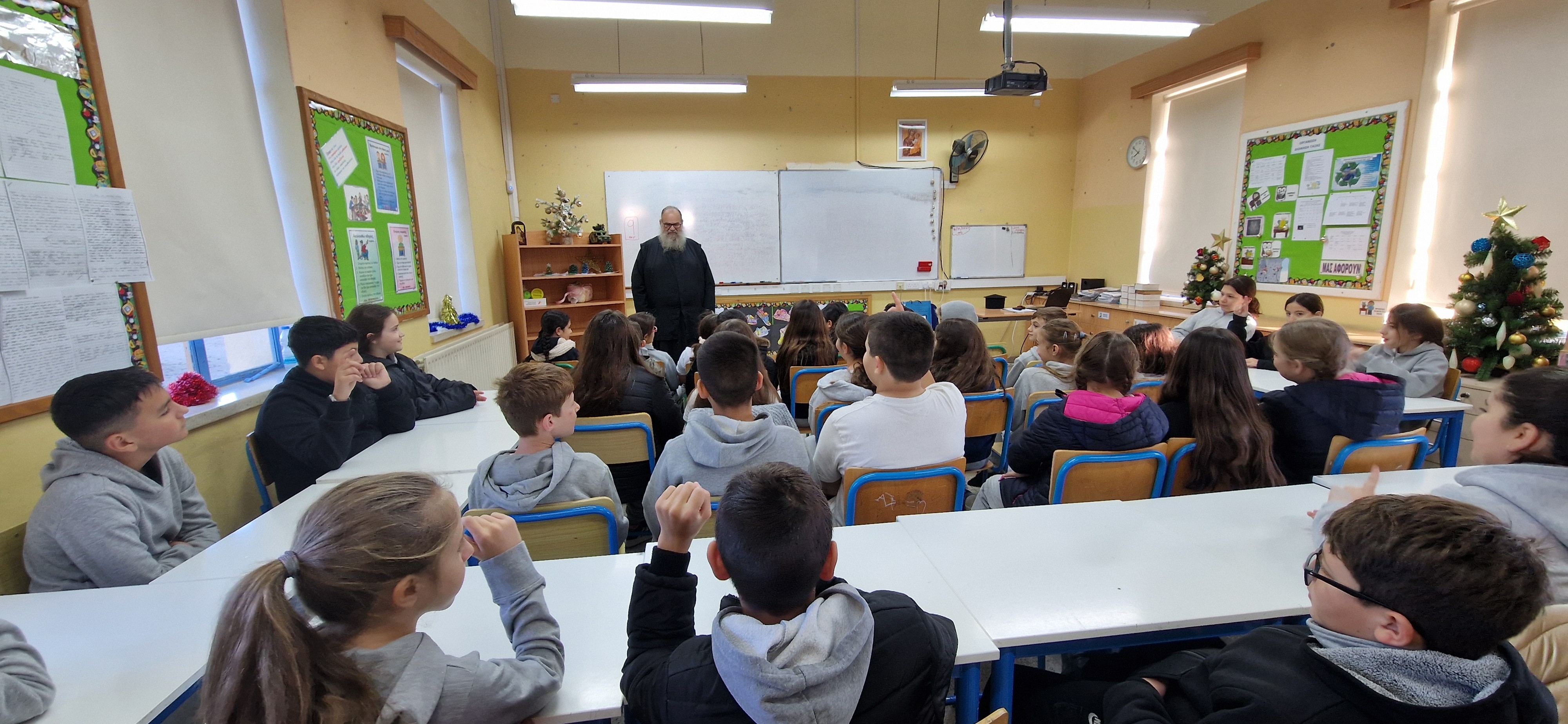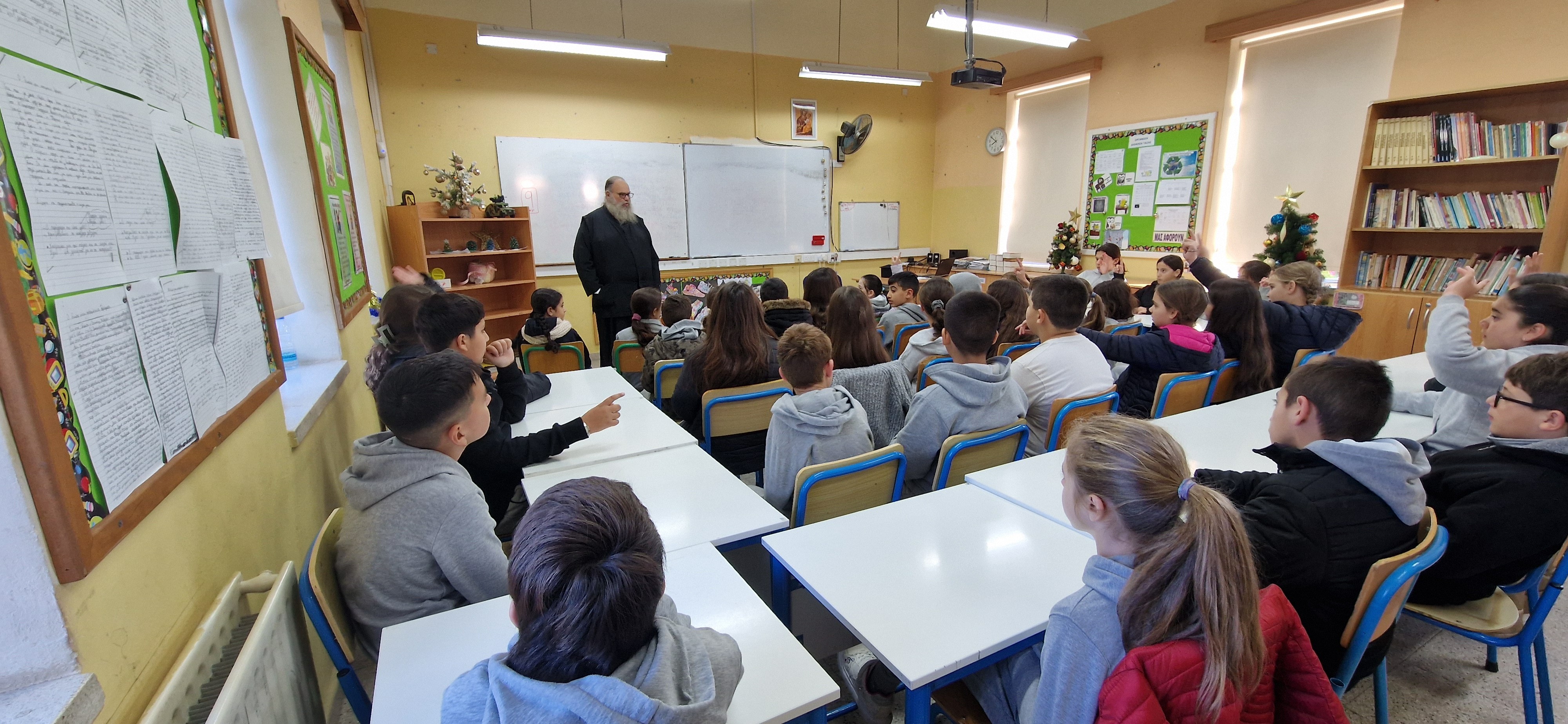 17. Τρίτη 16.12.2025: Ο πάτερ Ζούμος επισκέπτεται το σχολείο μας και συζητάμε τα παιδιά των Δ΄ και Ε΄ τάξεων.